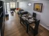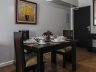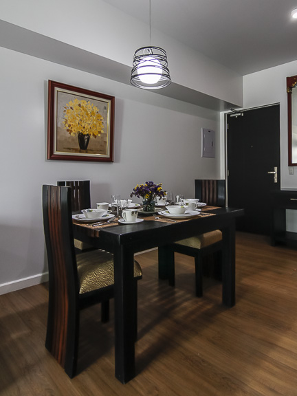 Enjoy meals on a really decked out dining place with cute table and comfy chairs and cutleries placed on beautiful placemats and an art-deco and a shelf placed on the sides