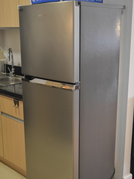 • Kitchen equipped with 2-door ref, electric cooking range with hood, microwave, and front load washer