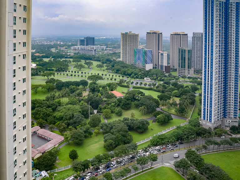 - The balcony view from this high-level placement unit are the refreshing lush greens, the serene American Memorial, high-rise residential towers and the distant city skyline