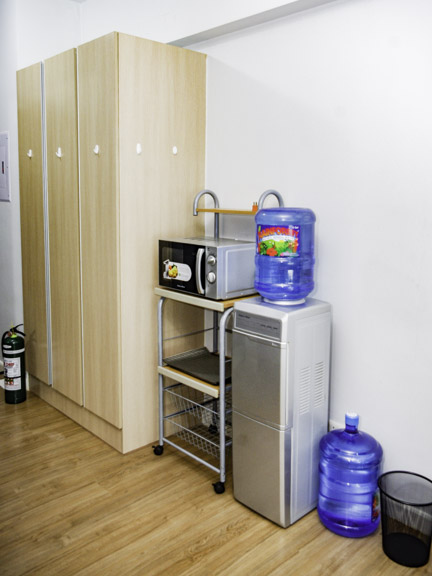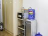 • Two-door fridge, and electric range with hood are fitted in the corner kitchen
