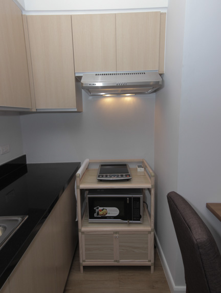- Equipped kitchen with microwave oven, single burner electric stove and a refrigerator