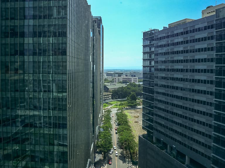 - From the balcony one gets a view of the water garden below and the neighboring towers nearby