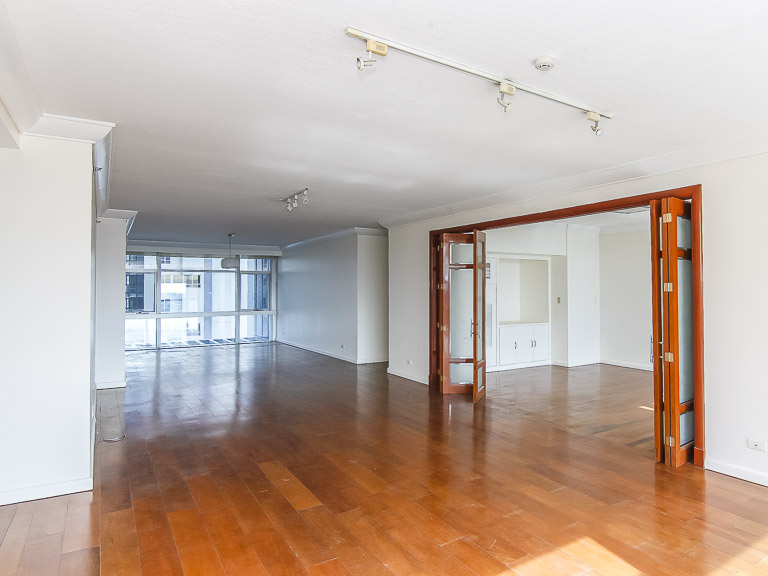 - Large common areas (living and dining rooms) with wood-framed folding glass interior wall-divider