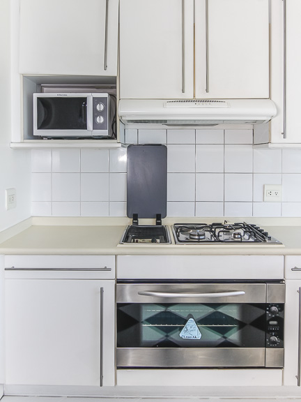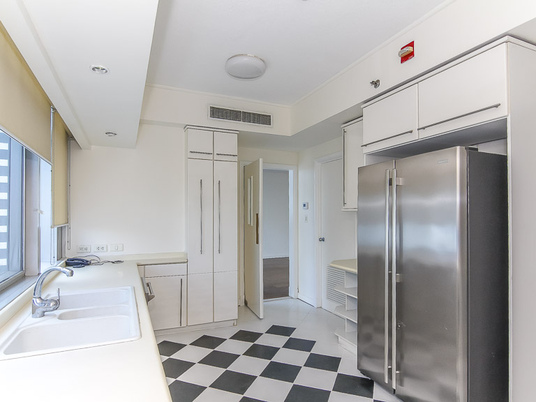 - Huge closed kitchen with a view, abundant storage cabinets and shelves, well equipped with a four-burner counter-top range ands a griddle; built-in oven, microwave and a cabinet refrigerator