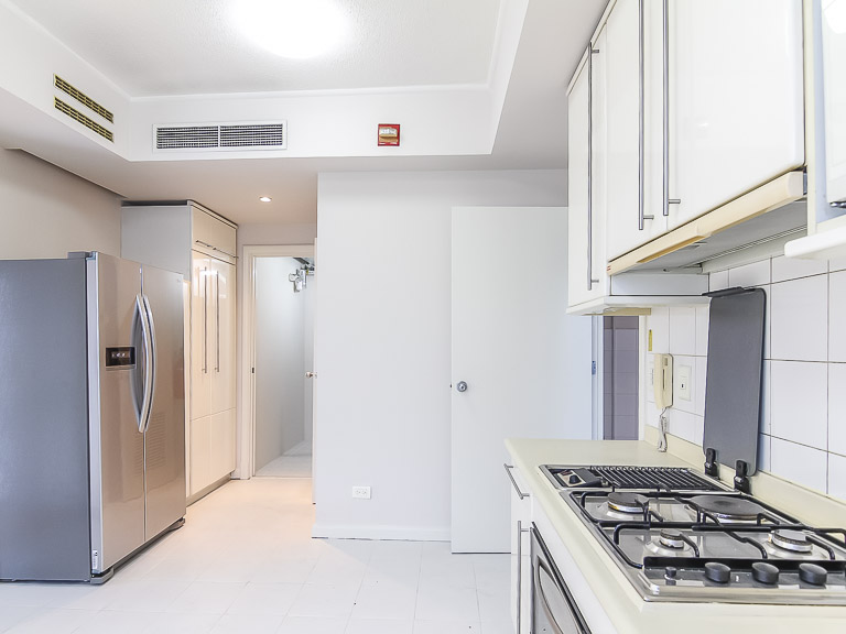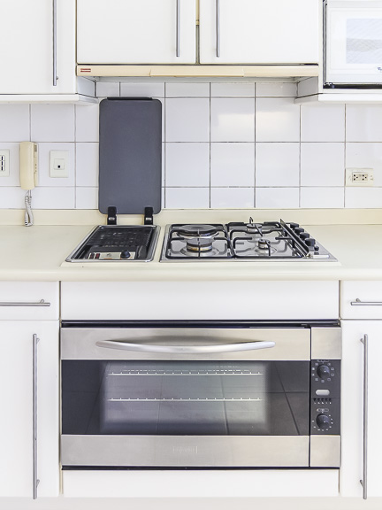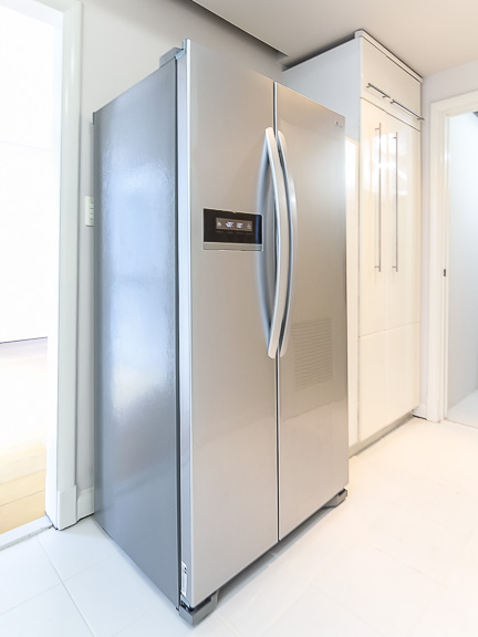 - Well-equipped kitchen; two-door side-by-side fridge, gas cooktop with grill and hood, built-in oven, microwave