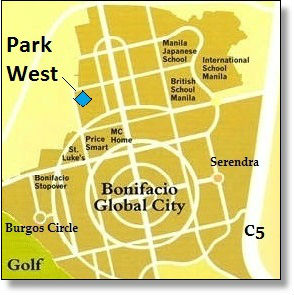 Park West is located in North BGC, just at the back of St. Luke’s Medical Center and S&R hypermarket