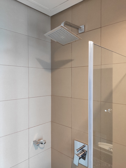 - Common bath has a handheld shower