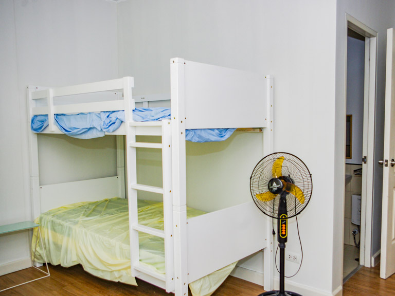 - Second bedroom has a double-decker bed and sofa; third bedroom is on the first level, equipped with full twin bed