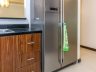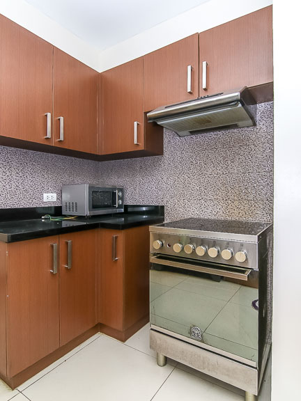 • Appliances include a cabinet-type refrigerator, gas range with hood and a microwave