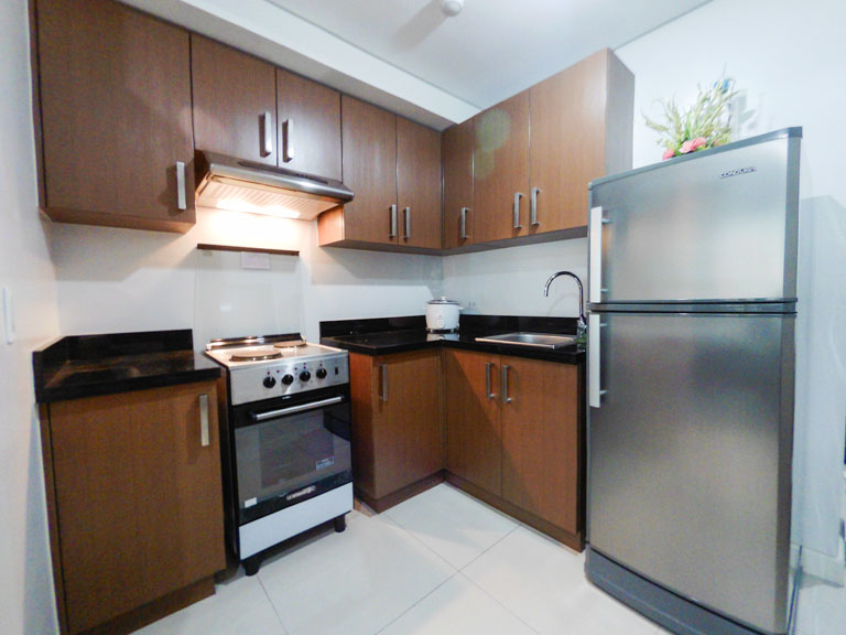 • Kitchen area is provided modern equipment, rangehood, a two door refrigerator, electric cooker and utensil storage