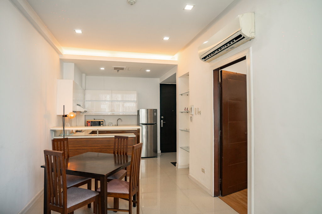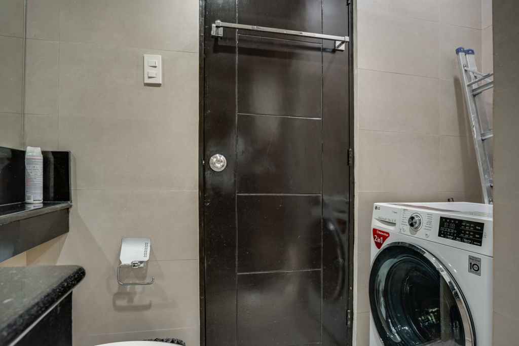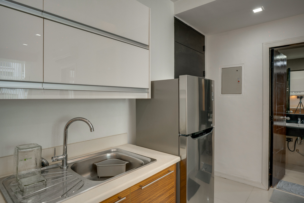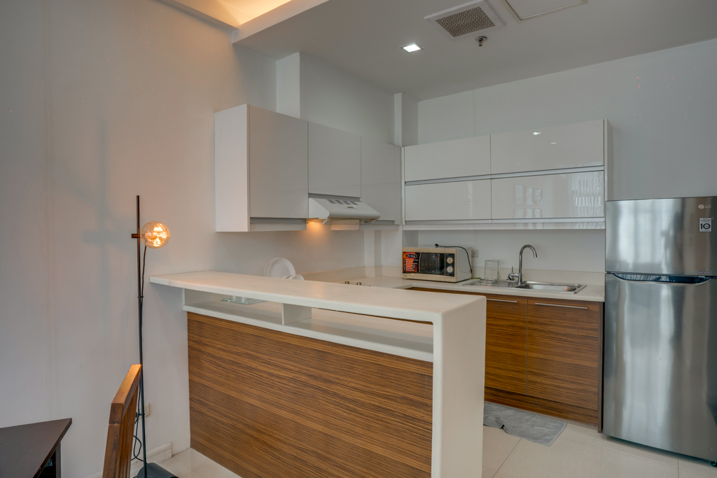 • Kitchen is equipped with electric stove and gas range, microwave, two-door refrigerator, plenty of storage / cabinet