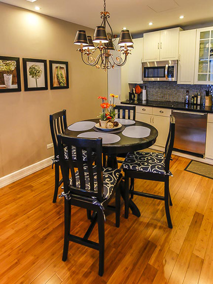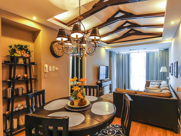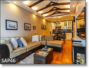 - Nice interior, recessed ceiling with exposed wooden beams gives a homely feel