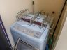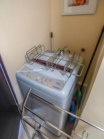 • Corner kitchen with two-door ref, induction stove, microwave, and table top oven