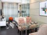 - Not far from the sofa is a four-sitter glass dining table and chairs diamond tufted backrests