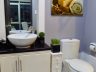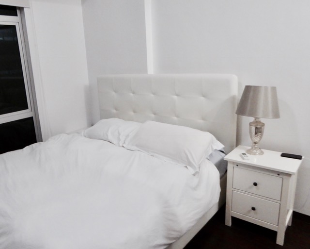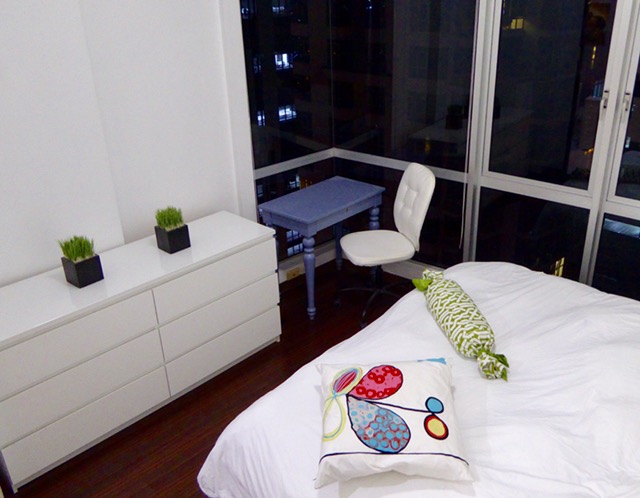• Master’s bedroom fitted with a big queen sized bed, reading chair, chest of drawers and vanity mirror + desk