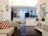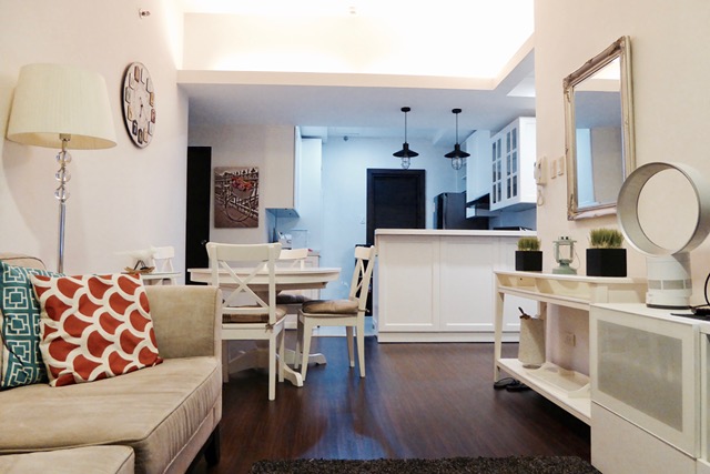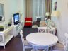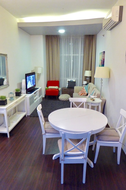 • Right next, a dining place is provided with a rounded wooden white beautiful table and a couple of cozy chairs
