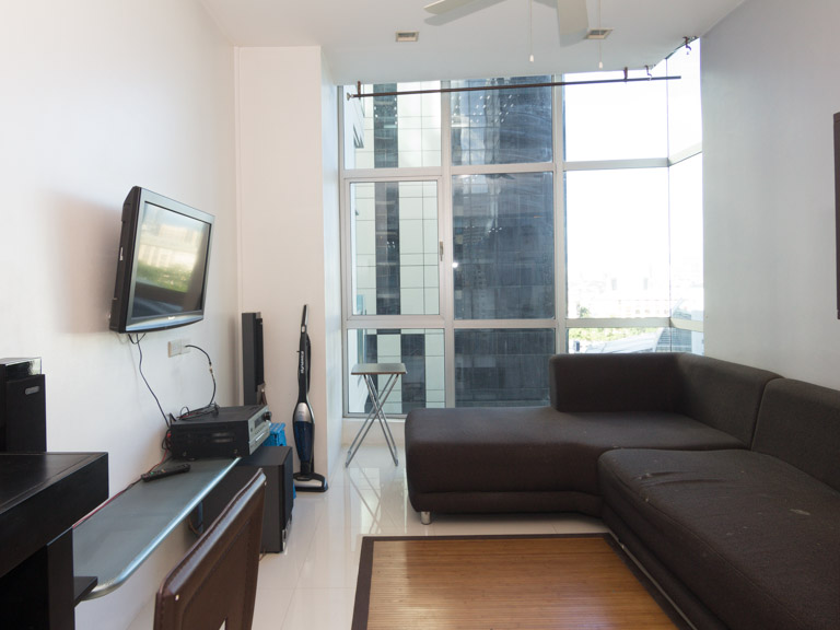 - This two-bedroom unit is in white paint interior, and shiny tile flooring
