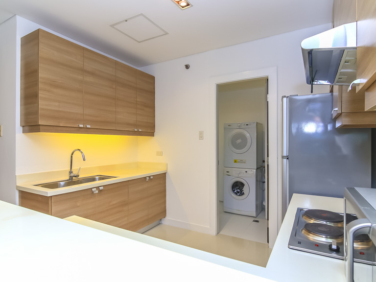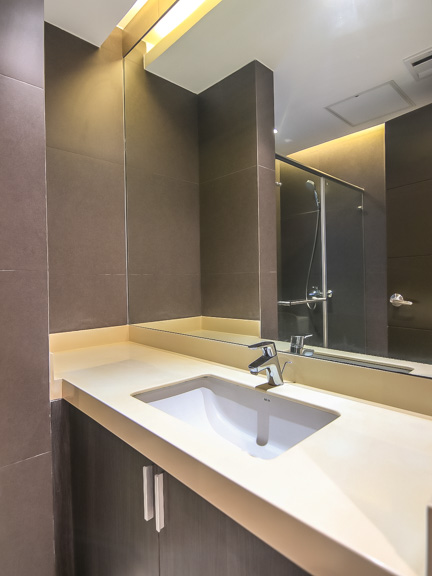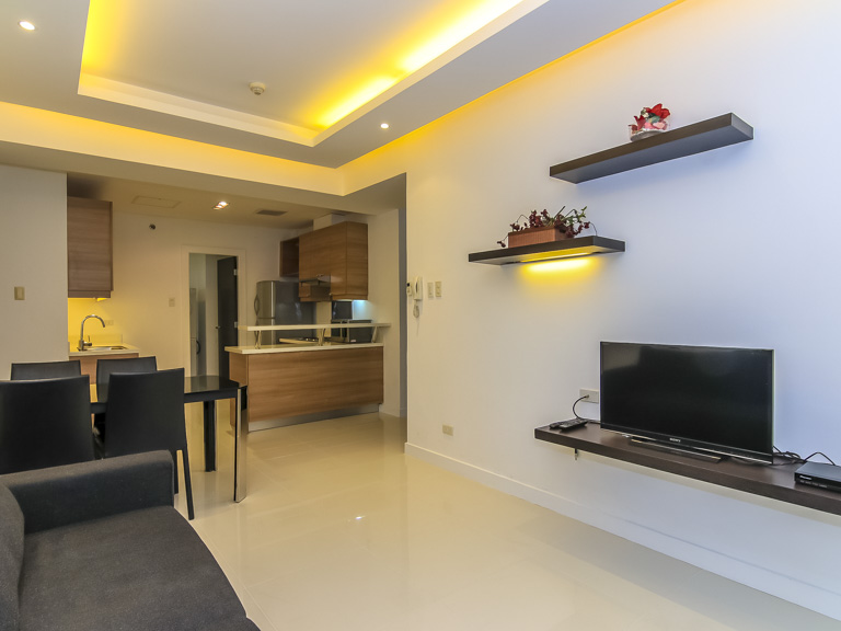 - Suspended beams reflecting the ceiling lights in the living and dining rooms render the unit cozy and fit for after-work intimate entertainment