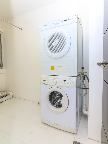 - Provision for laundry is made with the stack up washing machine and clothes dryer