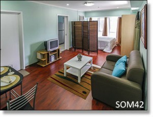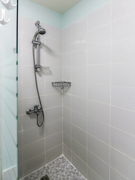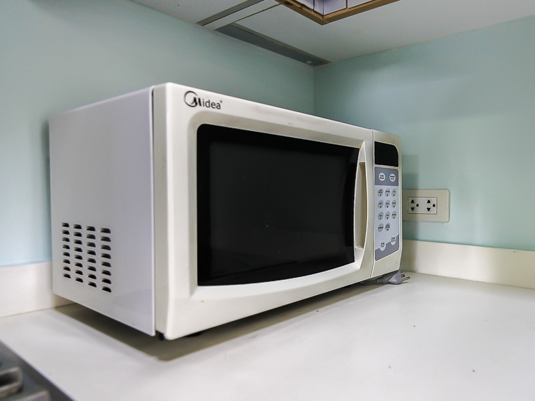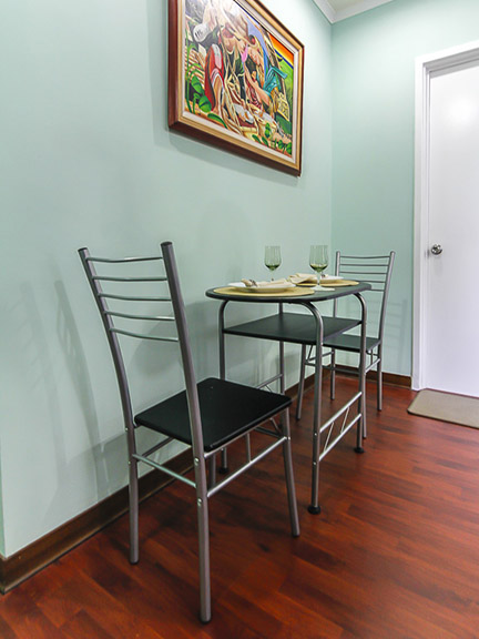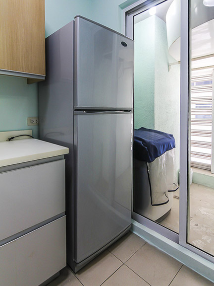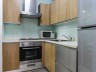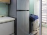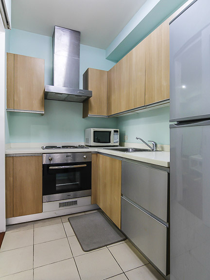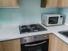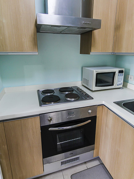 - Closed kitchen with electric cooktop and oven with hood, two-door ref and microwave