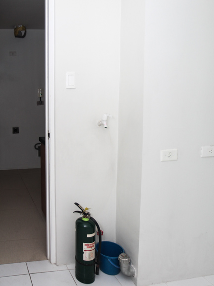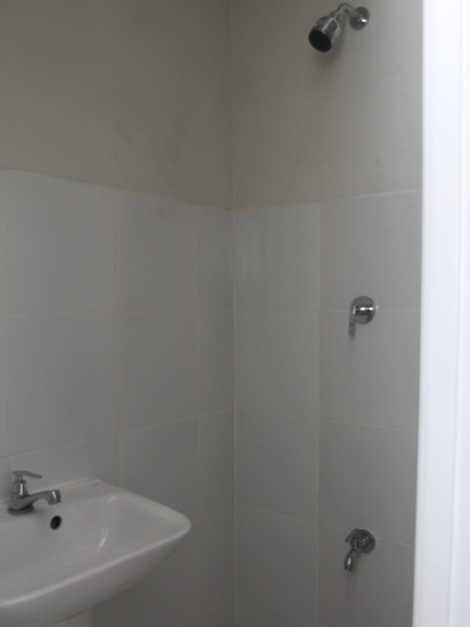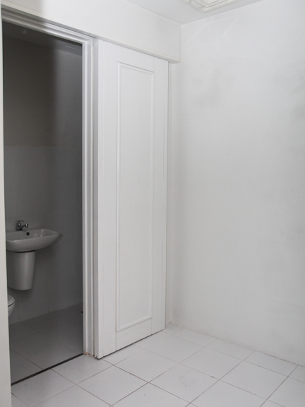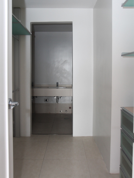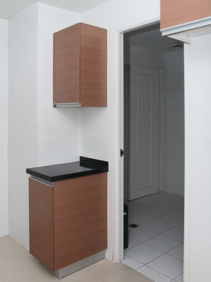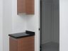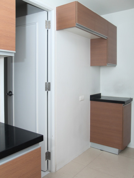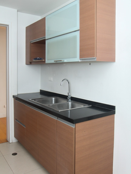 - The kitchen is in a two-wall configuration and has provisions for a two-door fridge, and cooking range with ventilation hood