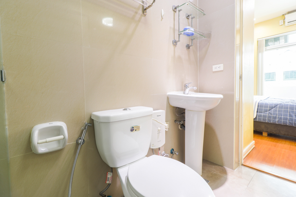 • Bathroom has water heater and adjustable handheld shower installed