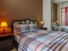 - Full twin bed with upholstered headboard, side tables and lamps, and balcony access in bedroom