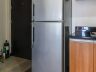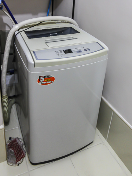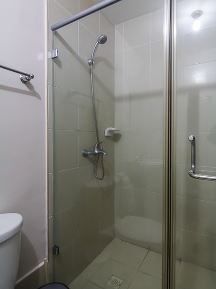 - Bathroom comes with a glass shower enclosure and washing machine