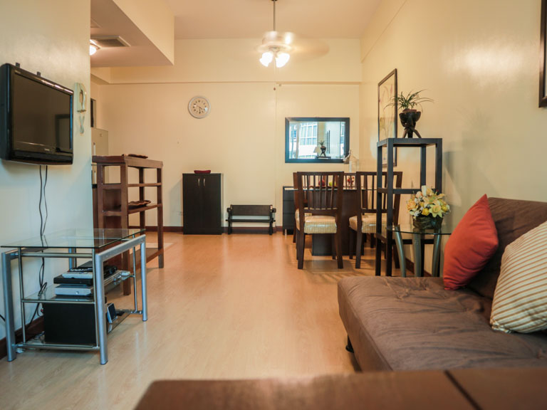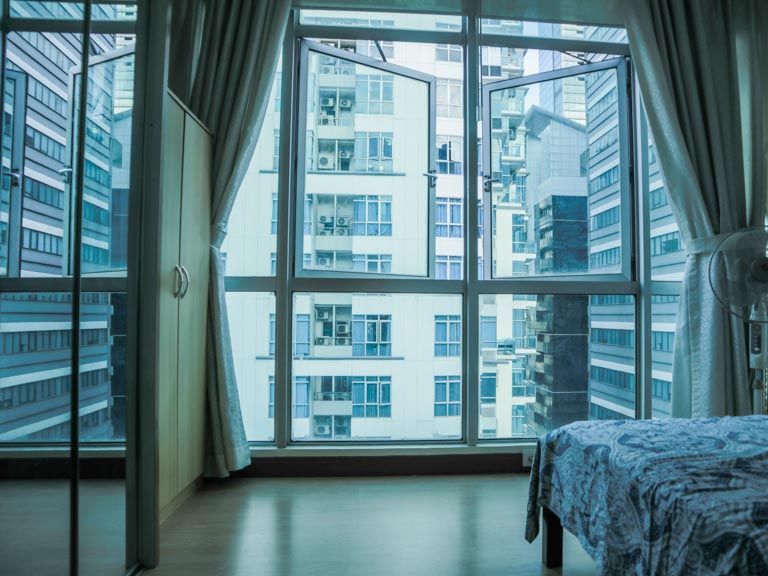• Air-conditioning is split-type in the living room and window type in the bedroom