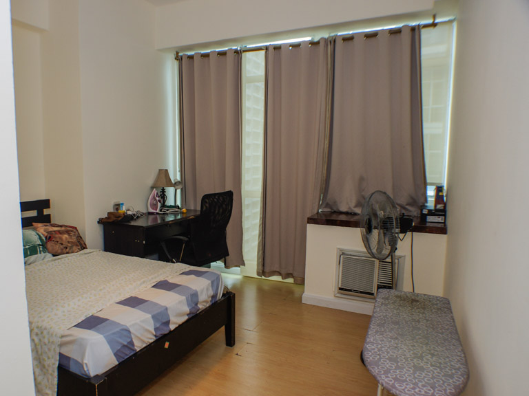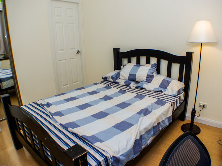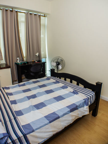 - Master bedroom equipped with queen size bed, TV, and study desk