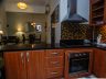 - Kitchen is fitted with a two-door fridge, microwave, induction cooktop with hood, slide-in oven, and bar counter; automatic washing machine next to the ref