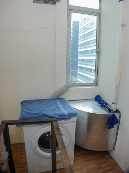 - Utility room next to the kitchen has the front load dryer