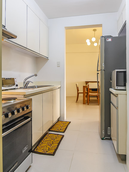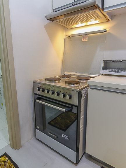 - The kitchen is equipped with the very current items; a cooker, refrigerator, rangehood, microwave and a utensil storage area