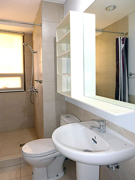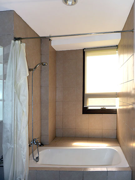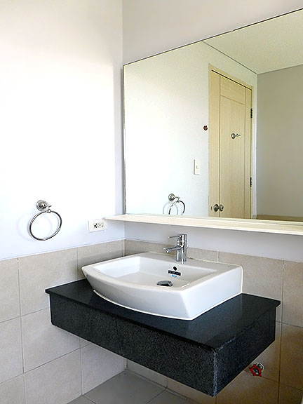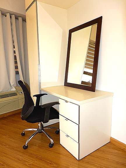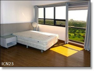 - With big windows facing the Golf Course, mirror and carpet in gray and white making an interesting color contrast