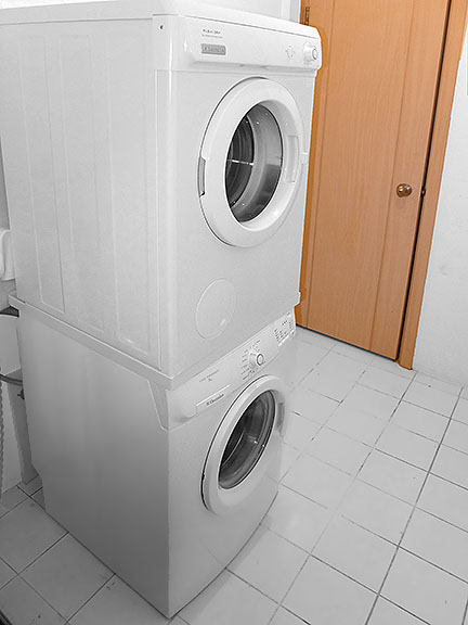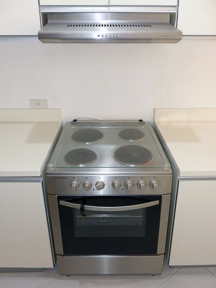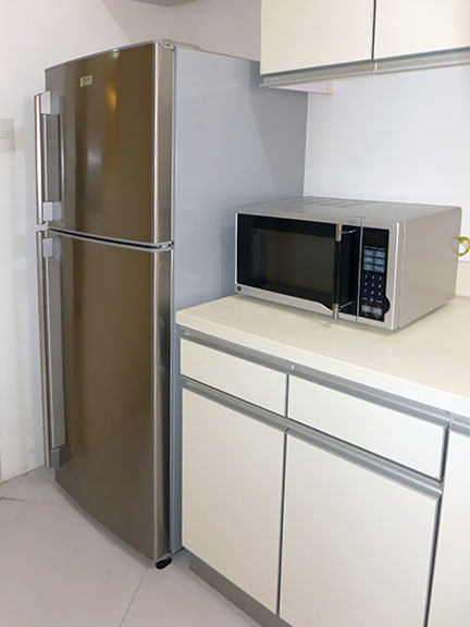 - Kitchen with spacious cupboards, 2 door refrigerator, microwave and cooking stove
