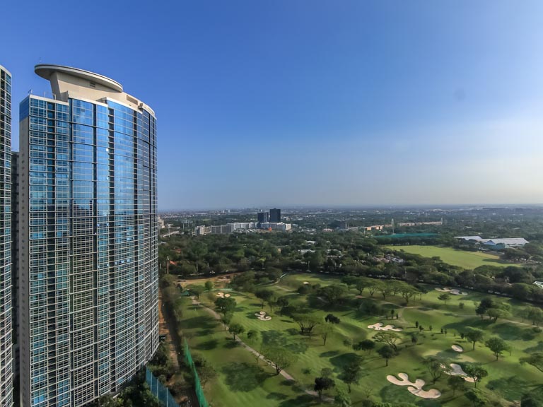 - A spectacular view of the city and the Manila Golf Course, and a breath-taking view of the streets and structures below fill the eyes from the roof deck