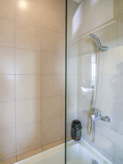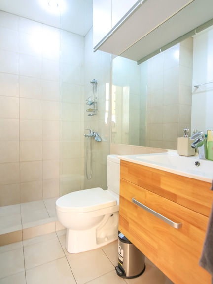 - Bathroom 2, with a single vessel sink also has a shower enclosure, and fitted with a hand-held shower