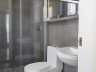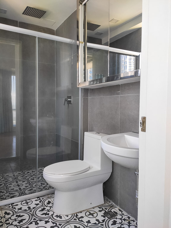 The master bath has a large, overhead rainfall shower