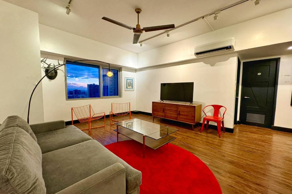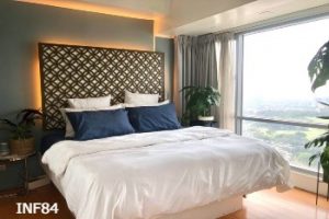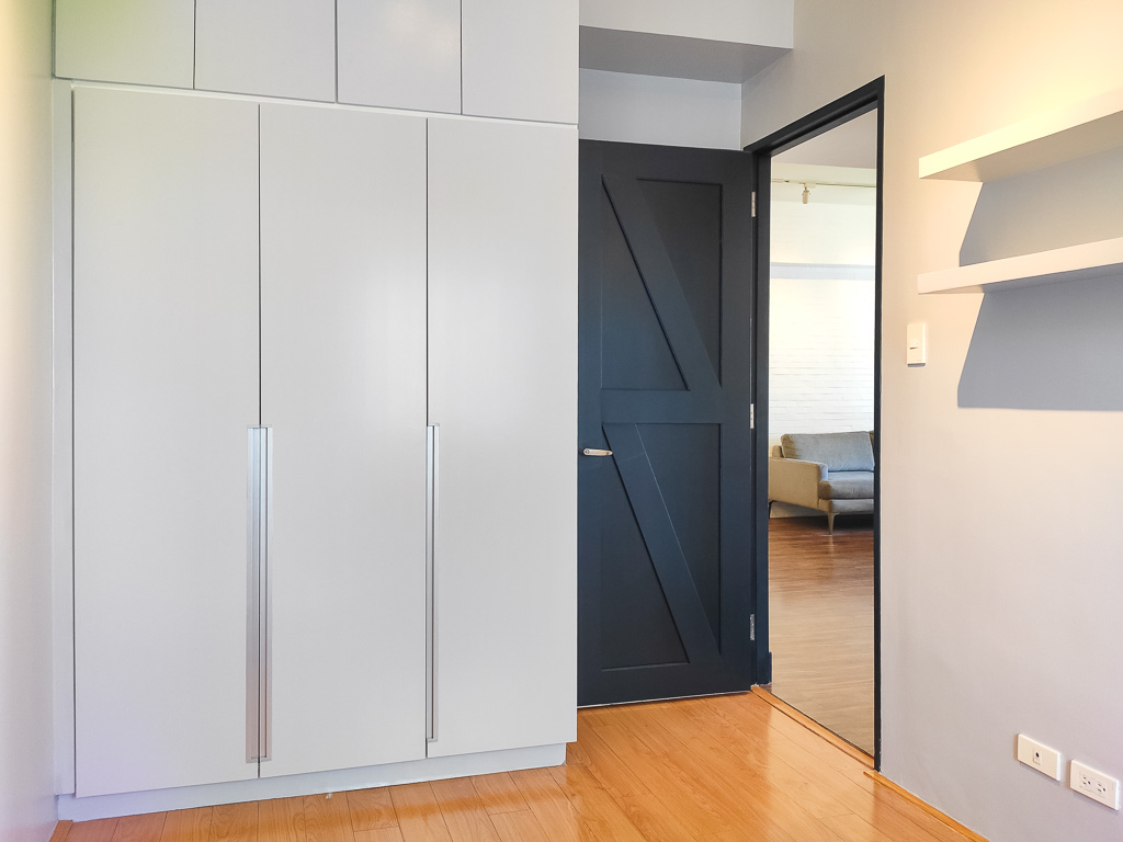 The master bedroom houses a king-size, zen platform bed with floating headboard and a large mirrored dresser