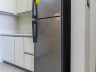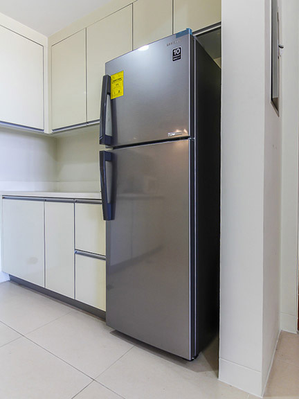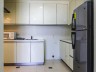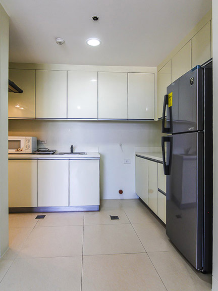 - Kitchen with two-door ref, microwave oven, induction stove, cooking range ready space, and plenty of cupboard and cabinet space