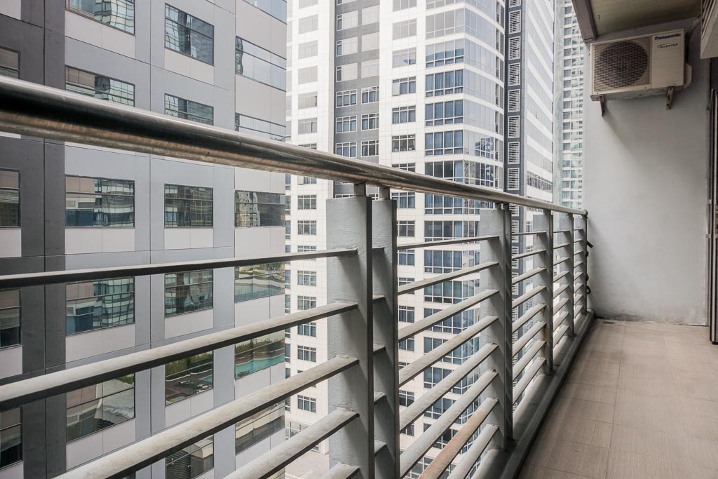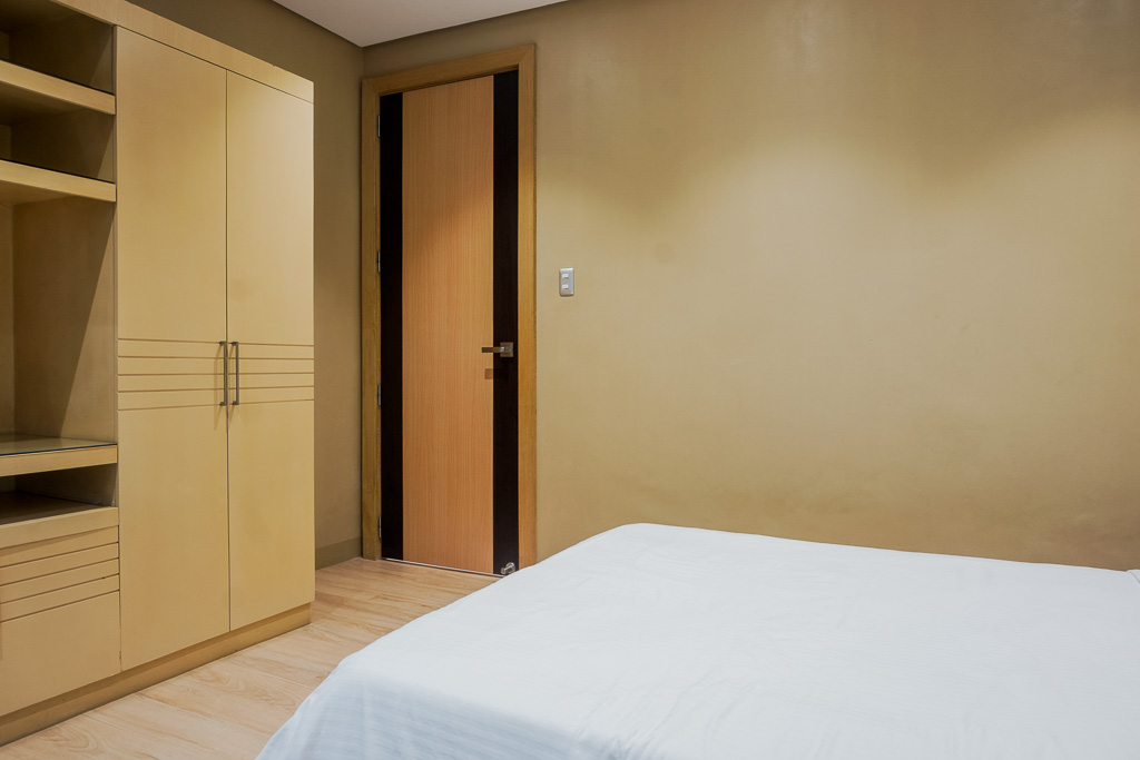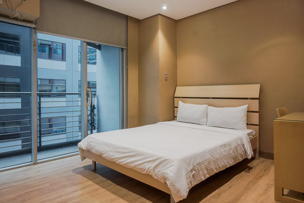 This two-bedroom unit is lavished with great daylight from the full glass panel walls and sliding doors to the bedroom balcony