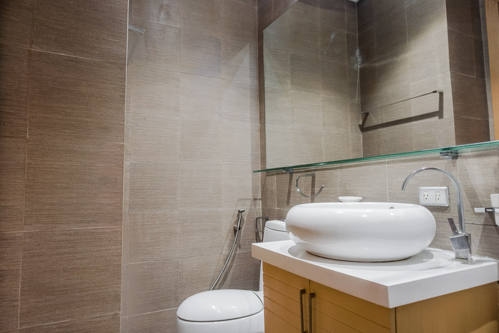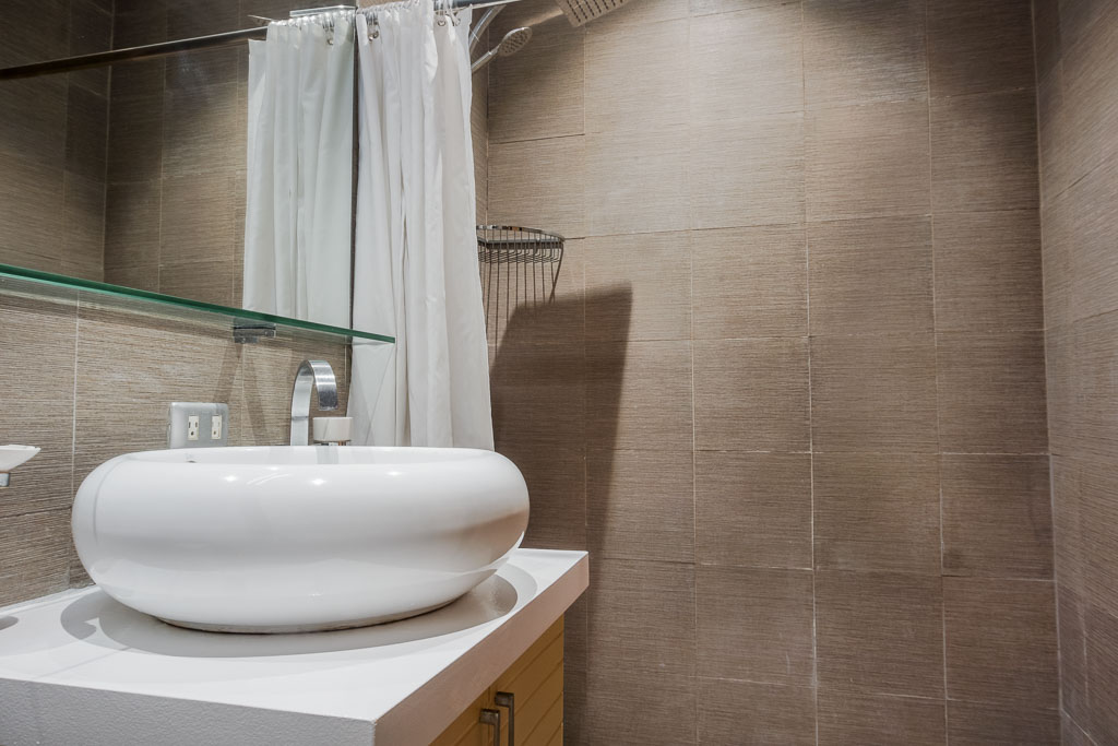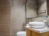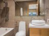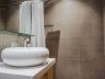 Bathroom 2 has a fixed rainfall and hand-held shower, modern toilet and a vessel sink