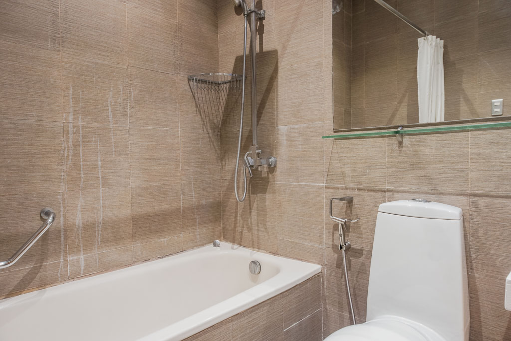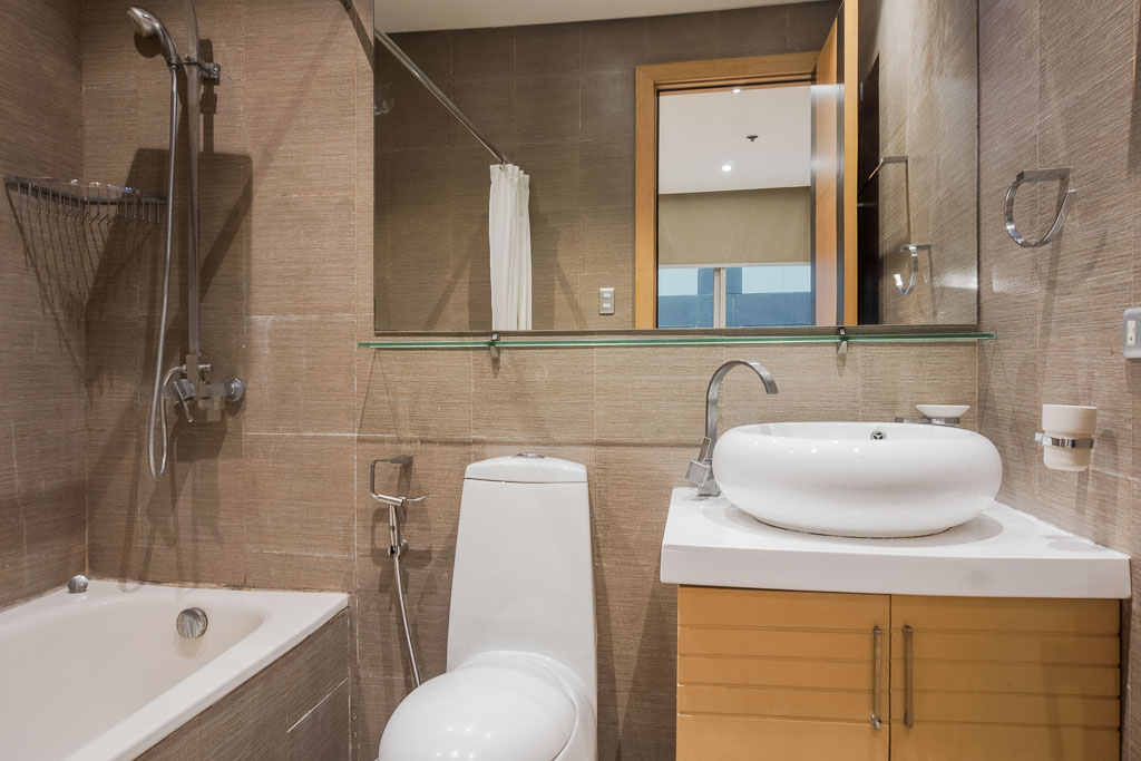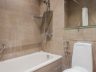 Bathroom 1 is generously spaced, with an alcove bathtub, modern toilet, fixed rainfall shower and a vessel sink