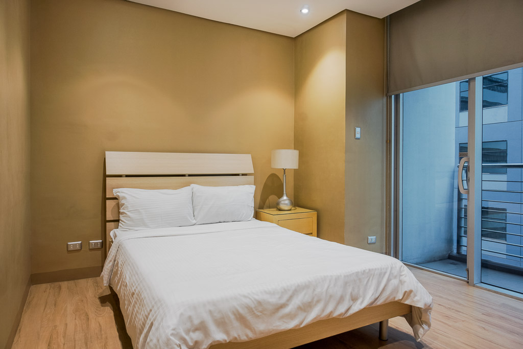 Bedrooms 1 and 2 enjoy great natural light from the full glass panel wall and balcony sliding door