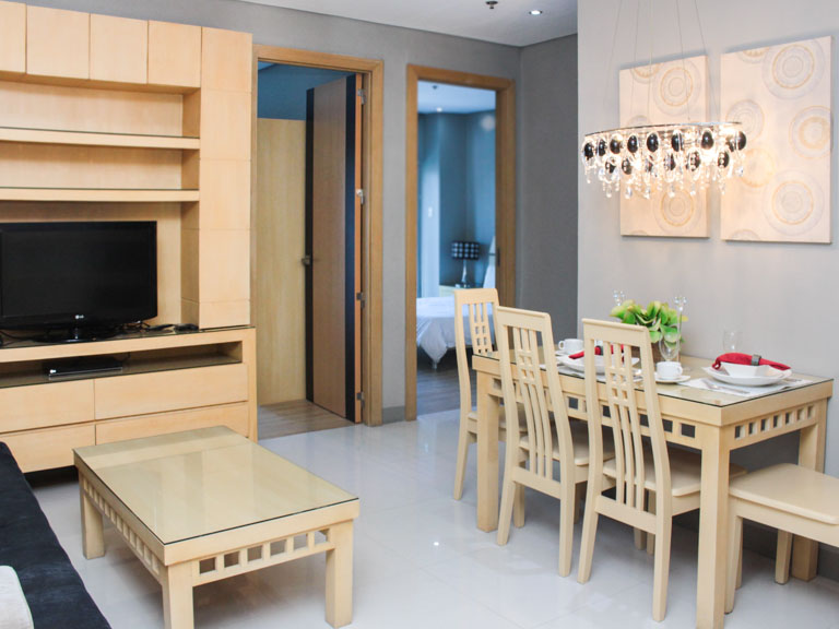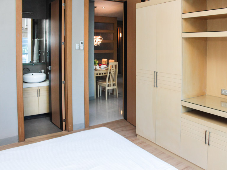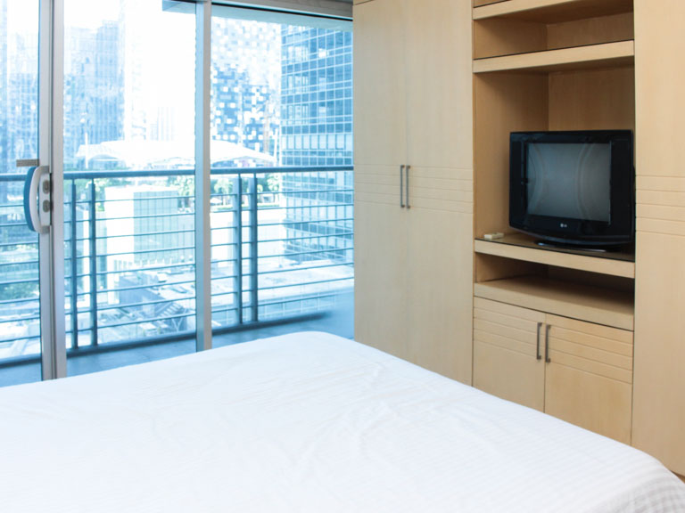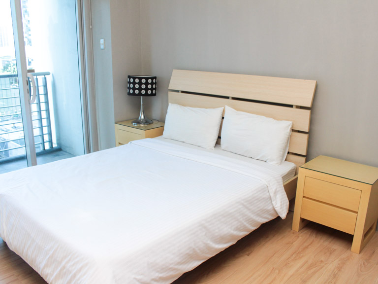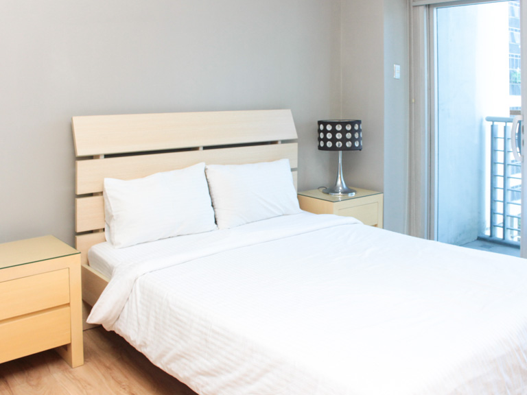 • From the bedrooms, the balcony door opens to view of the city with its high and medium-rise structures