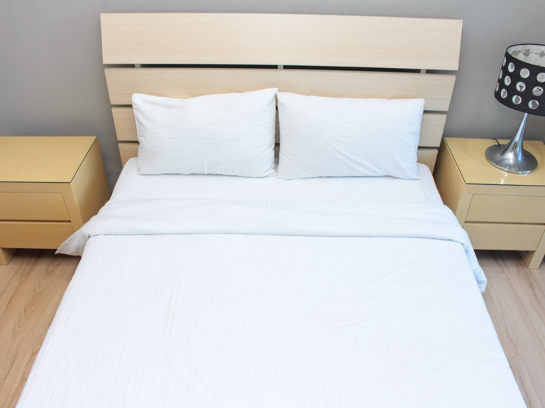 • Great natural light brightens the bedrooms through the full glass panel walls. Each bedroom is furnished with a w full twin-size wooden bed with a headboard and bedside drawers