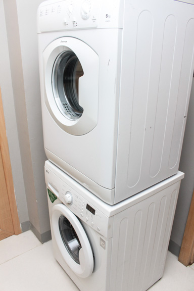 • Utility room next to kitchen, fitted with front load washer and dryer