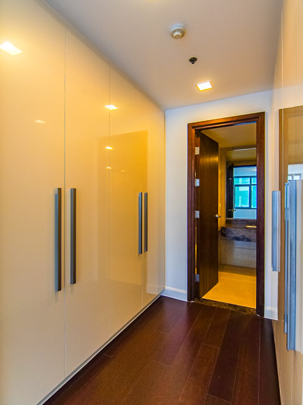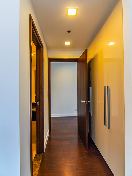 - Majority of the flooring is dark, polished wood parquet, from the common areas to the bedrooms