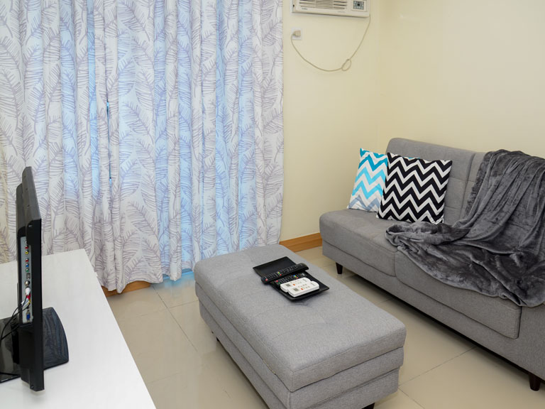 - Natural light and ventilation come from the full glass panel wall in the living room and bedroom