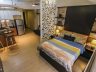 • Includes a full wall deco head board with shelving along with a queen size bed
